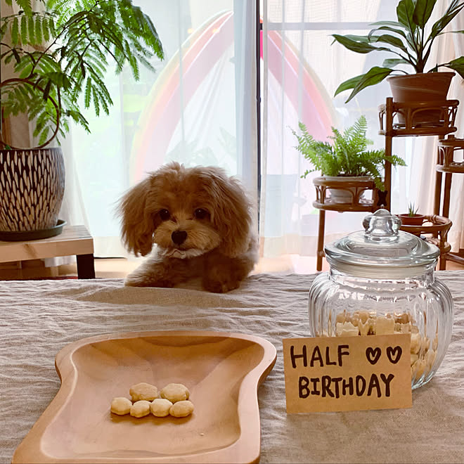 ハーフバースデー 犬と暮らす フラワースタンド 窓辺 観葉植物 などのインテリア実例 22 08 05 11 53 43 Roomclip ルームクリップ
